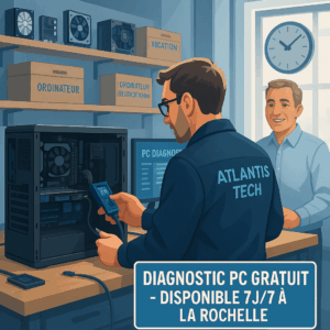 Vous cherchez un diagnostic PC gratuit fiable et rapide à La Rochelle ? Vous êtes au bon endroit. Chez Atlantis